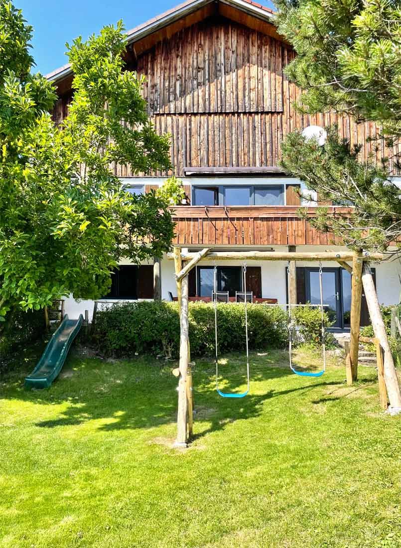 „Besonders Familien mit Kindern fühlen sich bei uns wohl: Direkt in Ihrem Garten wartet ein privater Spielplatz mit Rutsche, Schaukel, Trampolin und Sandkasten – ein echtes Kinderparadies, nur für Ihre Familie. Auch die Wohnung selbst ist modern und durchdacht ausgestattet – für einen rundum entspannten Aufenthalt.“